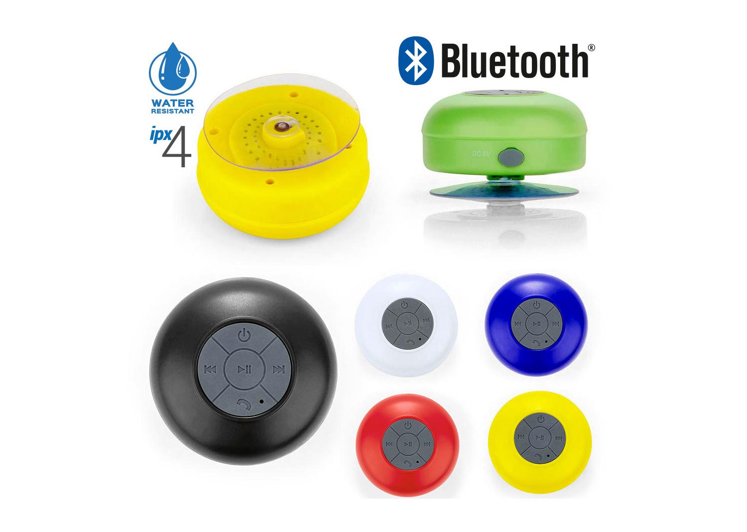 Altavoz Bluetooth V3,0 + EDR, Frecuencia de transmisión: 2.4 g hz, fuente de alimentación: DC 5V 100-120ma, batería: 3.7v 400mAh de litio, tiempo de carga: aprox.3 horas, Tiempo de funcionamiento: aprox.6 horas. respuesta de frecuencia: 100 Hz-20kHz, salida: 3W, rango: hasta 10 mt. distorsión: \u003c1.0%. Incluye cable de carga y chupa de succión. Resistente al agua grado IPX4.