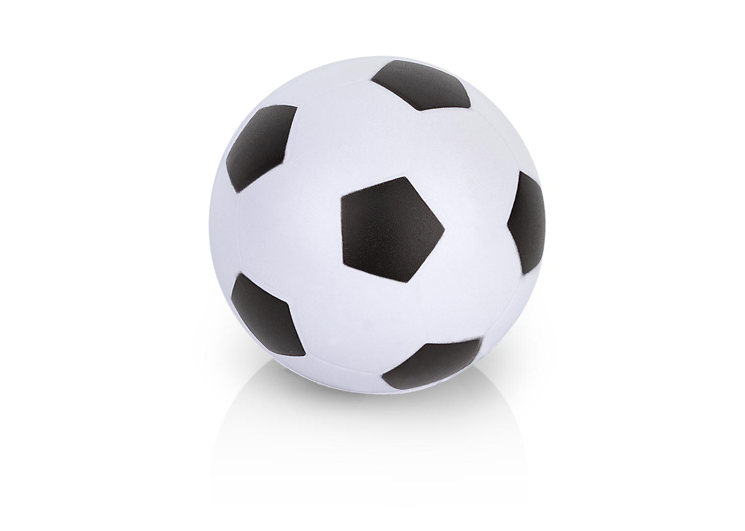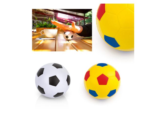 Desestresante en forma de balón de fútbol. MATERIAL: PU (Poliuretano). MEDIDAS: Diámetro de 6,3 cm. ÁREA DE IMPRESIÓN APROXIMADA: 2,8 x 1,3 cm. MARCA: SE SUGIERE: Tampografía para Antiestrés 1 tinta.