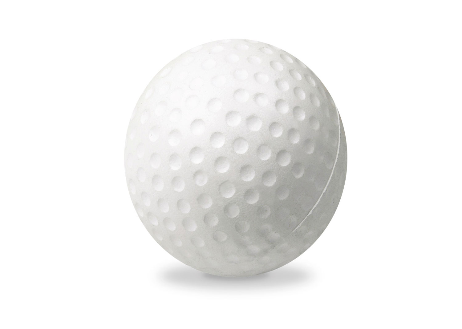 Desestresante en forma de bola de golf. MATERIAL: PU (Poliuretano). MEDIDAS: Diámetro de 6,3 cm. ÁREA DE IMPRESIÓN APROXIMADA: 3 x 2 cm. MARCA: SE SUGIERE: Tampografía para Antiestrés 1 tinta.