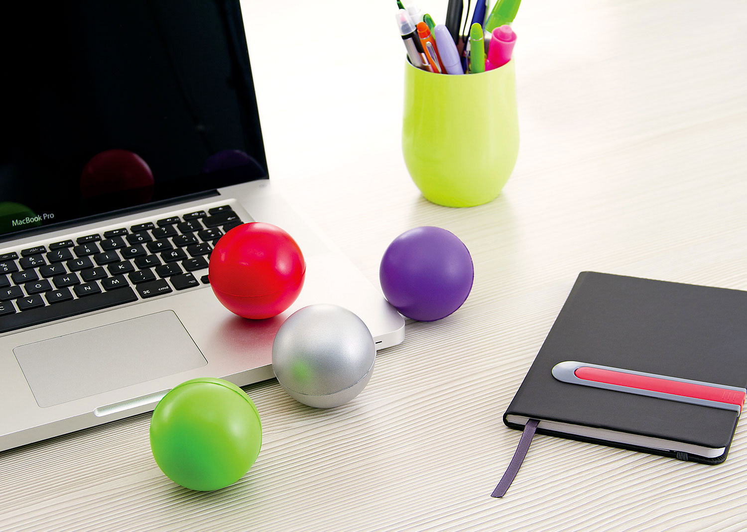Desestresante en forma de bola. MATERIAL: PU (Poliuretano). MEDIDAS: Diámetro de 6,3 cm.. ÁREA DE IMPRESIÓN APROXIMADA: 2,8 x 2,2 cm. MARCA: SE SUGIERE: Tampografía para Antiestrés 1 tinta.