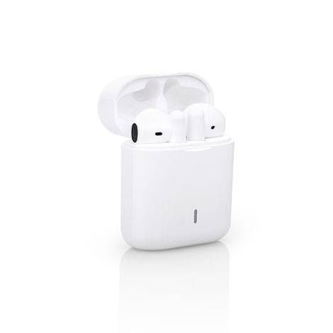 Audífonos Bluetooth versión 5.0 + EDR, en estuche de carga. Conexión inalámbrica (TWS) sonido estéreo inalámbrico con separación de canales izquierdo y derecho, efectos de sonido HIFI, y audífono izquierdo y derecho tienen una función Bluetooth que se puede utilizar de manera independiente. Distancia de transmisión: 6-10 metros. Tiempo de conversación: 3-4 horas. Batería de auriculares: 25 mAh. Batería de almacenamiento: 250 mAh. Incluye cable puerto tipo C para carga.