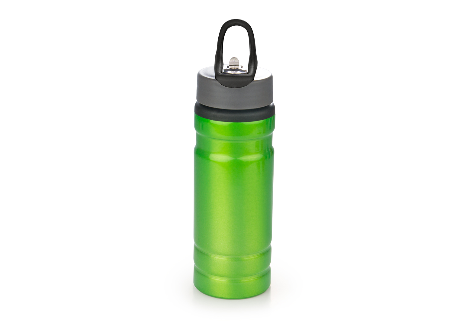 Botella de aluminio con agarradera, tapa rosca con pitillo, libre de BPA, ftalatos u otras sustancias nocivas. No retiene ni transmite sabores. Pintura exterior atóxica. Capacidad 750 ml./ 25 Oz.