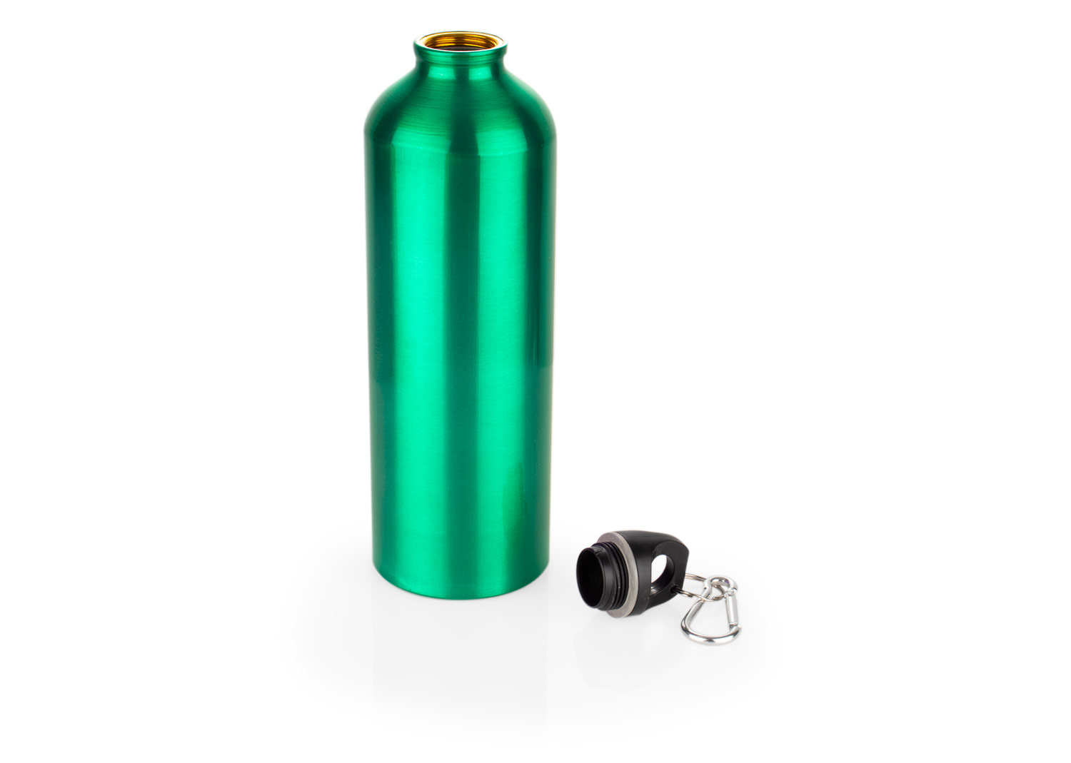 Botella de aluminio con gancho carabinero, tapa rosca. Libre de BPA u otras sustancias nocivas. No retiene ni transmite sabores. Pintura exterior atóxica. Capacidad 750 ml./ 25 Oz.