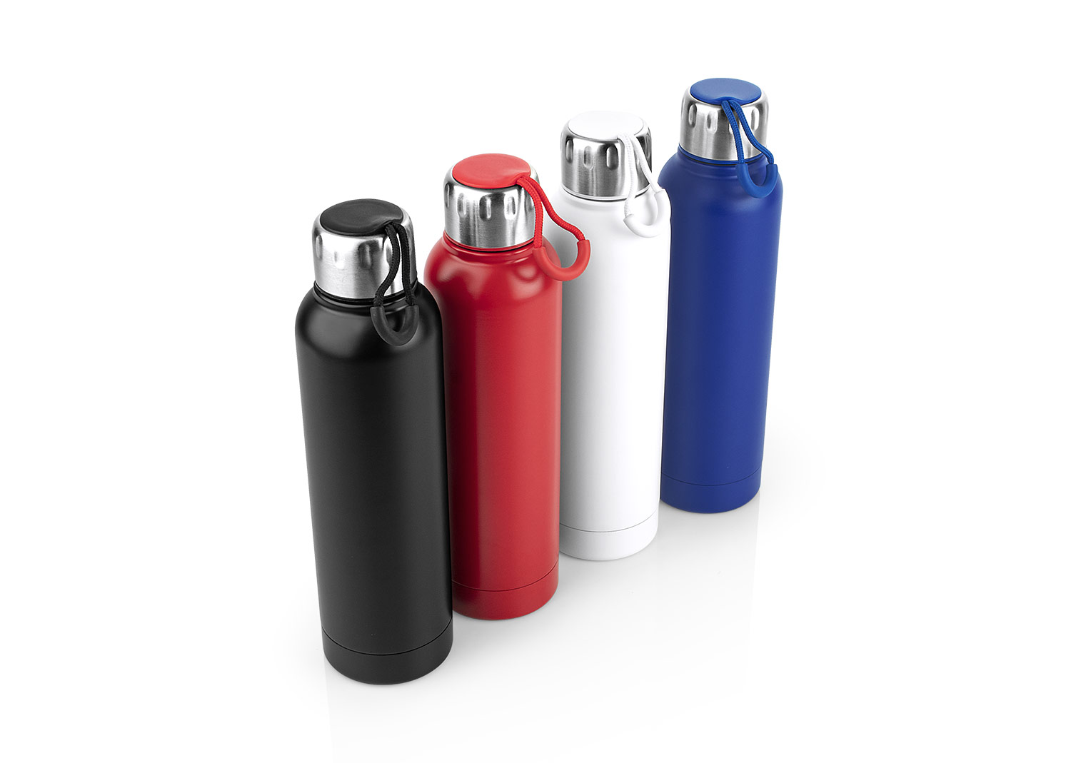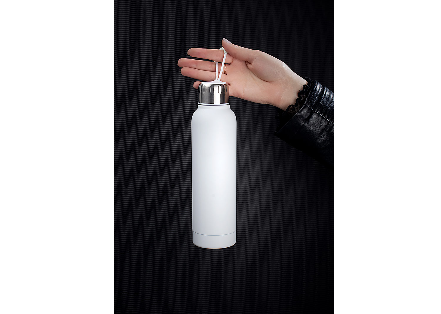 Botella en acero inoxidable de 600 ml / 20 Oz, tapa rosca y cordón para transportar fácilmente.