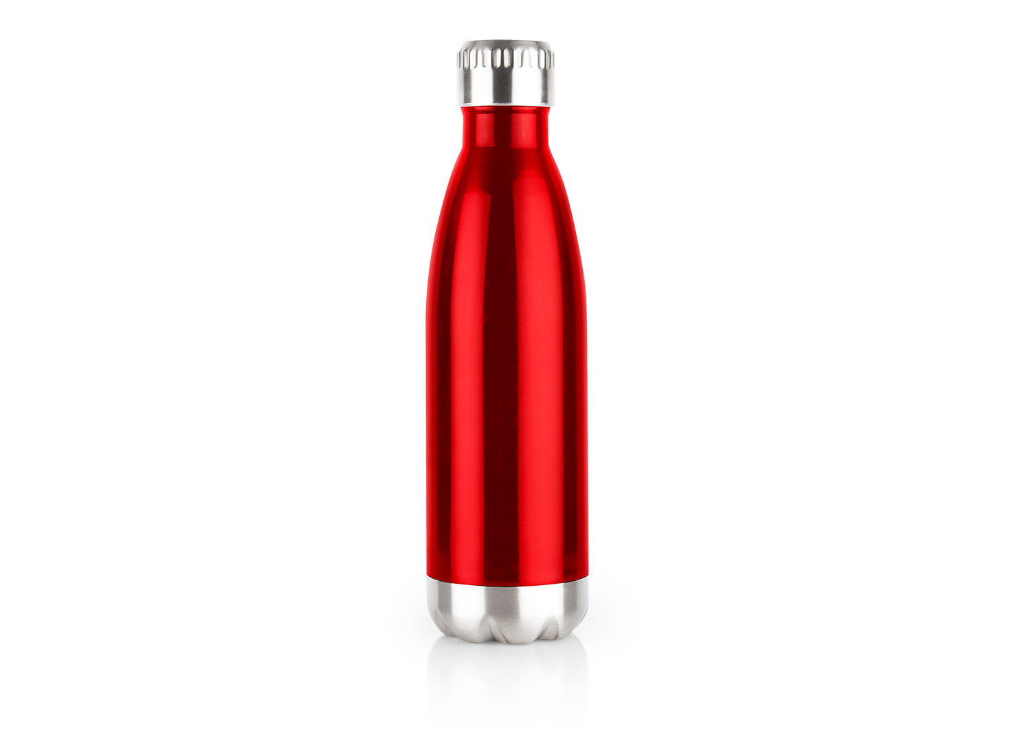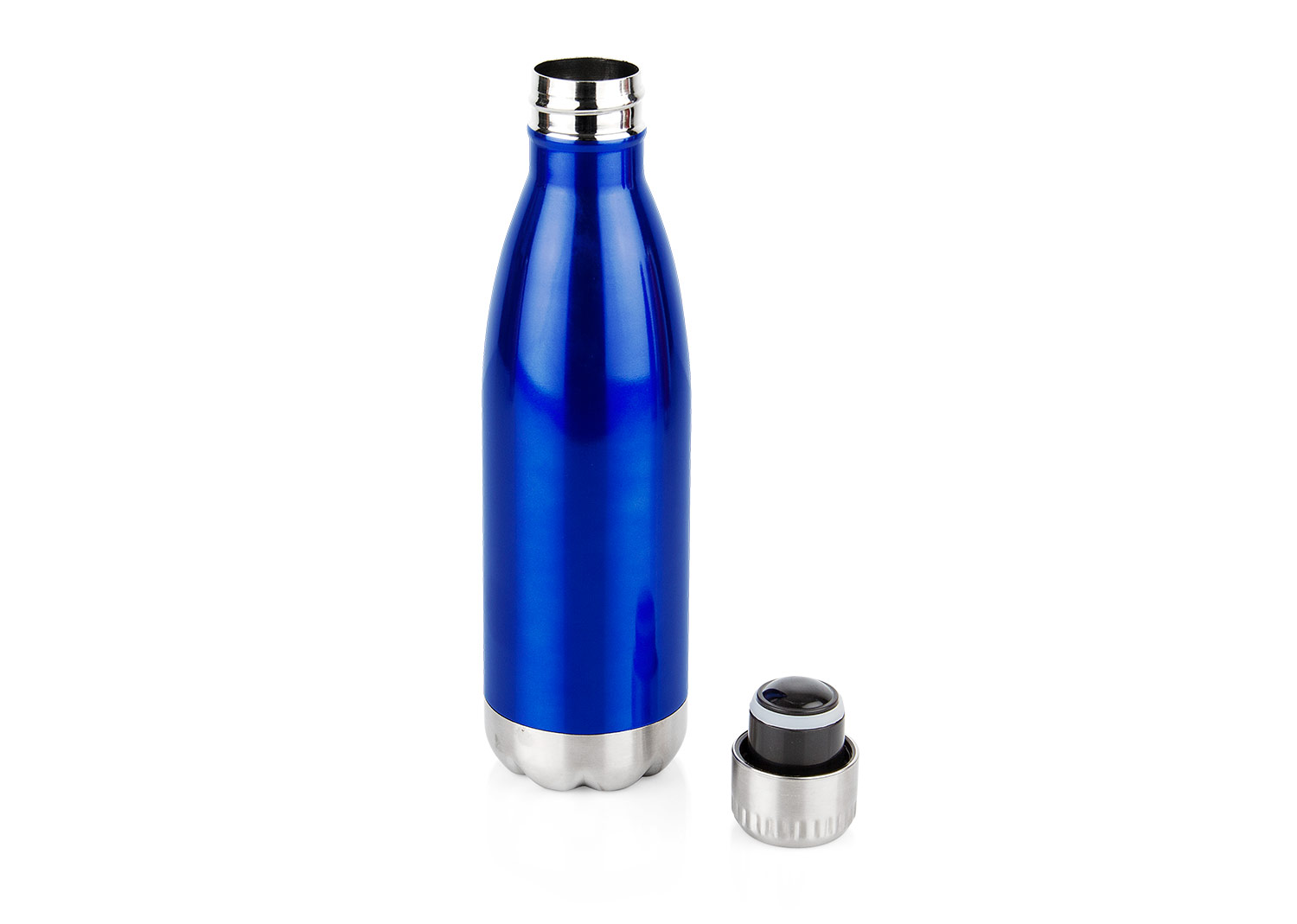Botella en acero doble pared con tapa rosca. Evita la condensación y aísla las bebidas calientes, ideal para insertar cubos de hielo pequeños y evitar goteos, mantiene las bebidas frías por 24 horas y las bebidas calientes por 12 horas. Capacidad 470 ml. /16 oz.