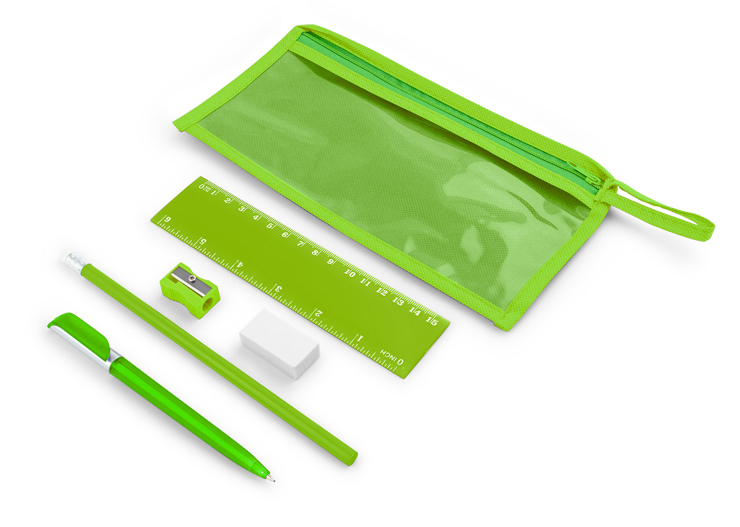 ÁREA DE IMPRESIÓN APROXIMADA: Cartuchera 7 x 5 cm. Lápiz: 4 x 0,5 cm. Bolígrafo: 4 x 0,6 cm. Regla: 6 x 1,5 cm.
