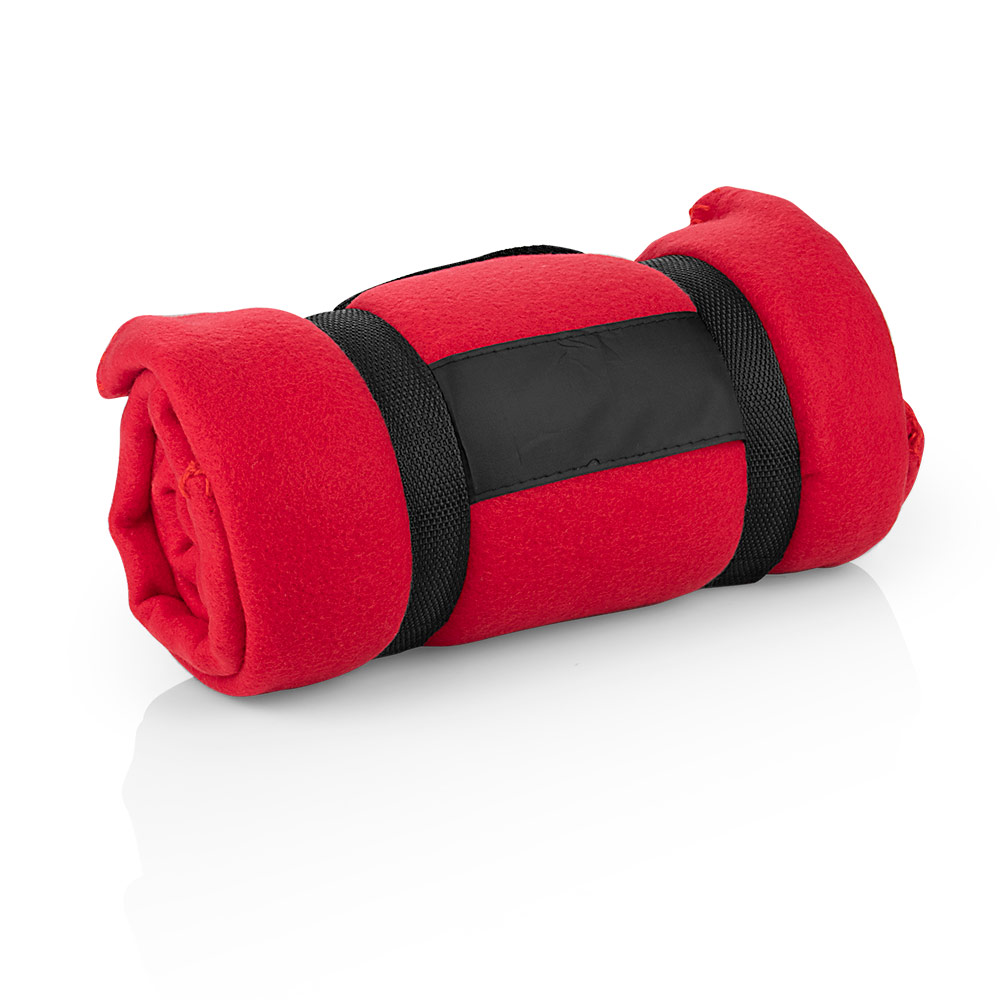 Manta viajera en lana suave con correa en nylon para ajuste y transporte, Peso: 180-180g, ideal para llevar en viajes.