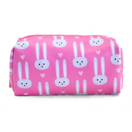 COSMETIQUERA ROSADA CON DISEÑO DE CONEJOS, ÚTIL PARA GUARDAR ACCESORIOS Y PRODUCTOS PERSONALES.