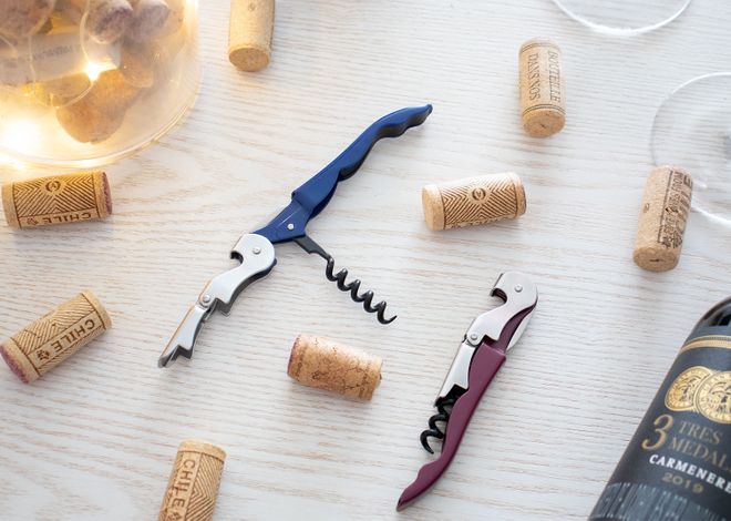 Sacacorchos de 2 tiempos, con destapador de botellas y navaja.
