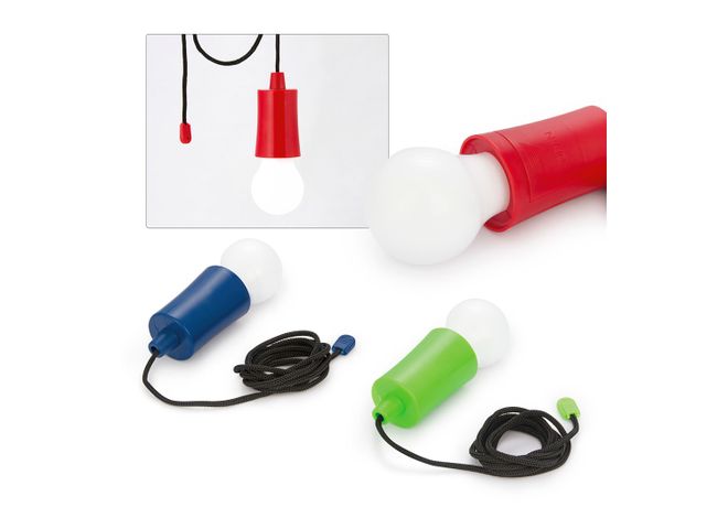 Lámpara de LED en forma de bombilla, con interruptor de encendido/apagado en el cordón, que también sirve para colgar. Requiere de 3 pilas AAA para su funcionamiento. No incluidas. Extensión del cordón: 95 cm.