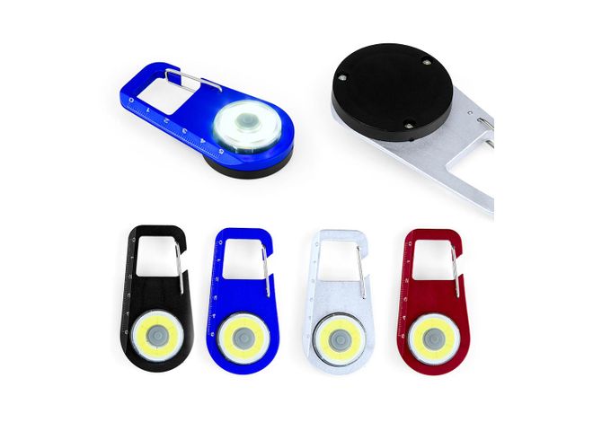 Linterna tipo carabinero con graduación de luz, la montura incluye regla de 5cm, funciona con baterias CR2032 x 2.