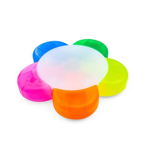 Resaltador en forma de flor, con 5 colores de tinta: azul, rosado, naranja, amarillo, verde.