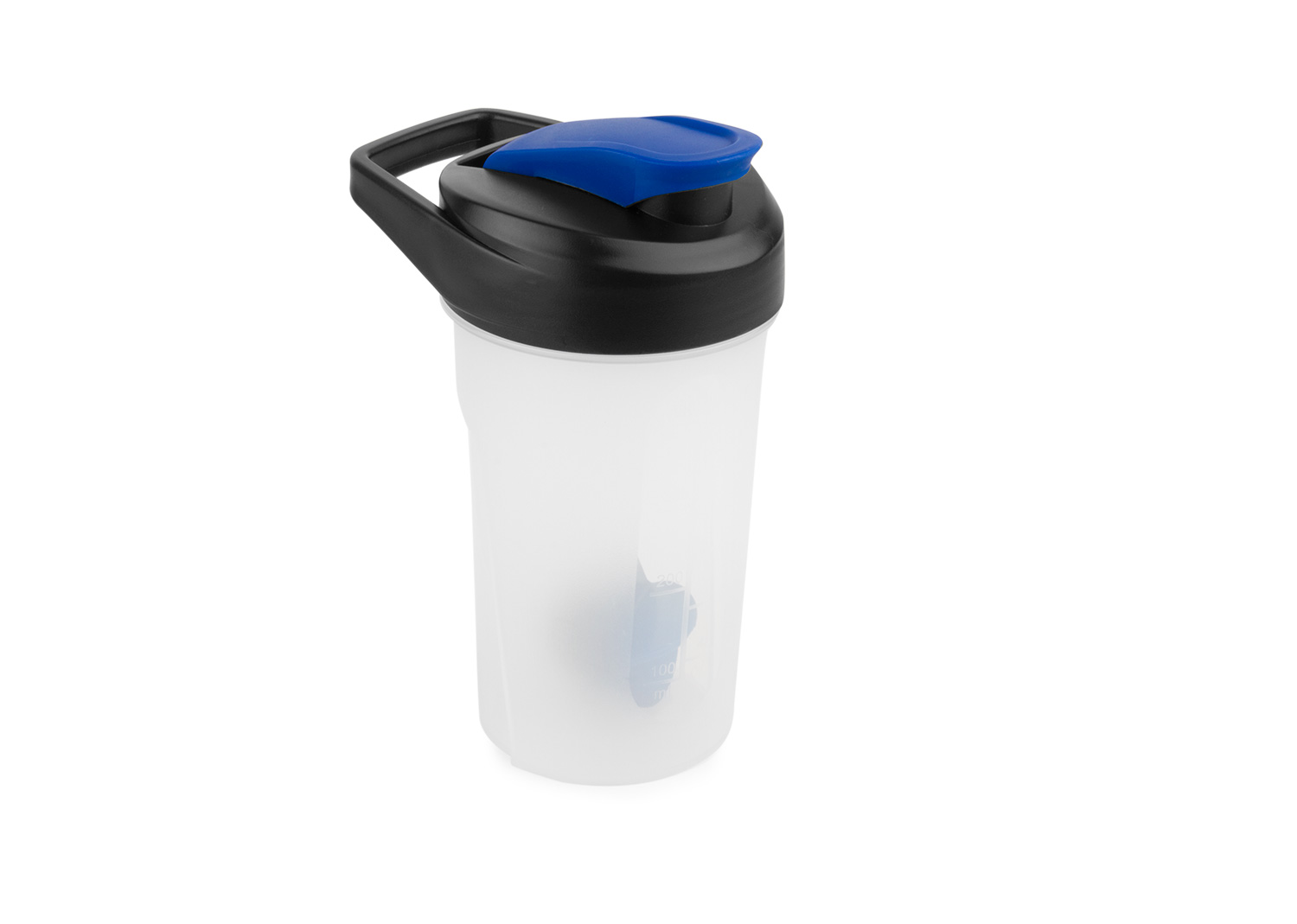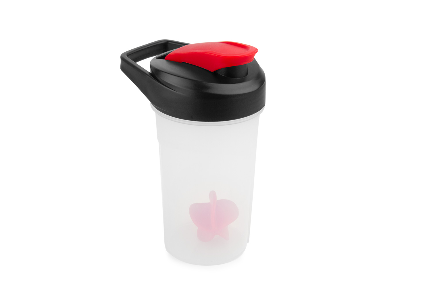 Botella deportiva con agarradera y shaker. Tapa rosca con boquilla de cierre a presión. En PP Libre de BPA, ftalatos u otras sustancias nocivas. No retiene ni transmite sabores u olores. Capacidad 400ml / 14 Oz.